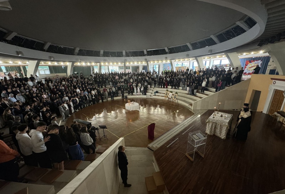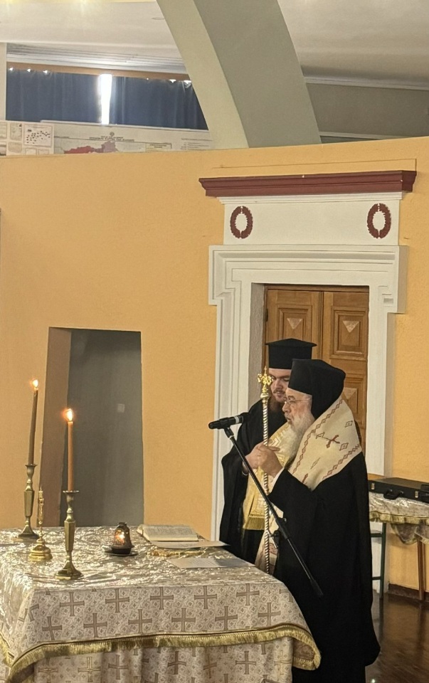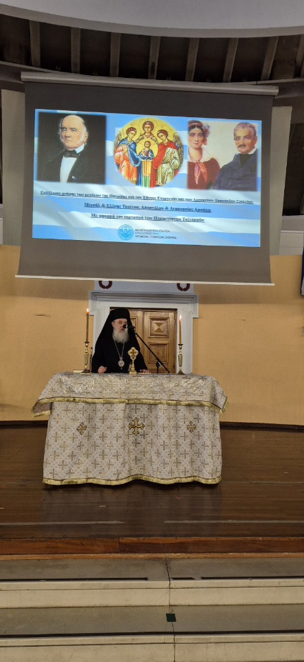 Κατά τη διάρκεια της επισκέψεως αυτής, ο Σεβασμιώτατος τέλεσε κατ' αρχάς Τρισάγιο υπέρ Αναπαύσεως των αειμνήστων μεγάλων ευεργετών του Γένους και των Σχολείων, Μιχαήλ και Ελένης Τοσίτσα και Αποστόλου Αρσάκη.